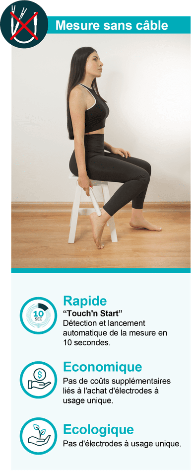 Les impédancemètres eBIODY sont portables et sans fil, permettant une aisance d’utilisation en toutes circonstances. Vous pouvez même prendre des mesures à la volée, sans ordinateur, que vous pourrez récupérer avec votre smartphone s’il dispose d’une technologie Bluetooth compatible.
